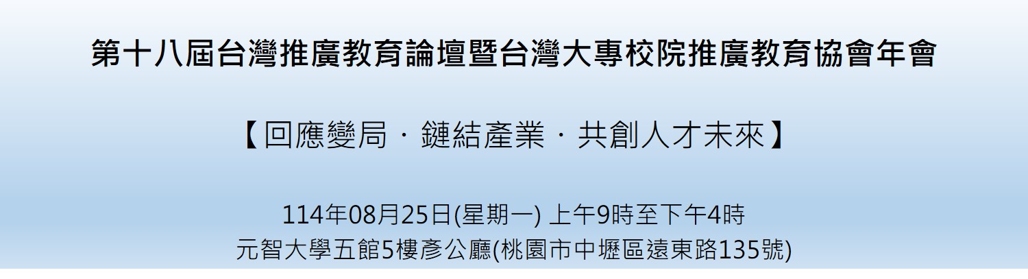 協會每年舉辦「論壇暨年會」活動。鑑於台灣終身教育發展漸趨成熟、為期有效結合國內高等教育學府,致力提昇推廣教育運作與教學品質。