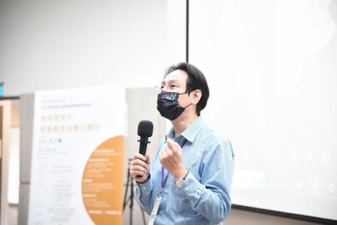 李執行長先與眾人分享,在疫情衝擊下,自強基金會面臨的挑戰:國際市場實體課程無法推廣、實作課程無法以遠距進行等等,緣此,自強基金會積極推動全面數位轉型,做為線下課程替代方案,混成教學、虛擬教室、電子講義平台,再搭配數位精準行銷。