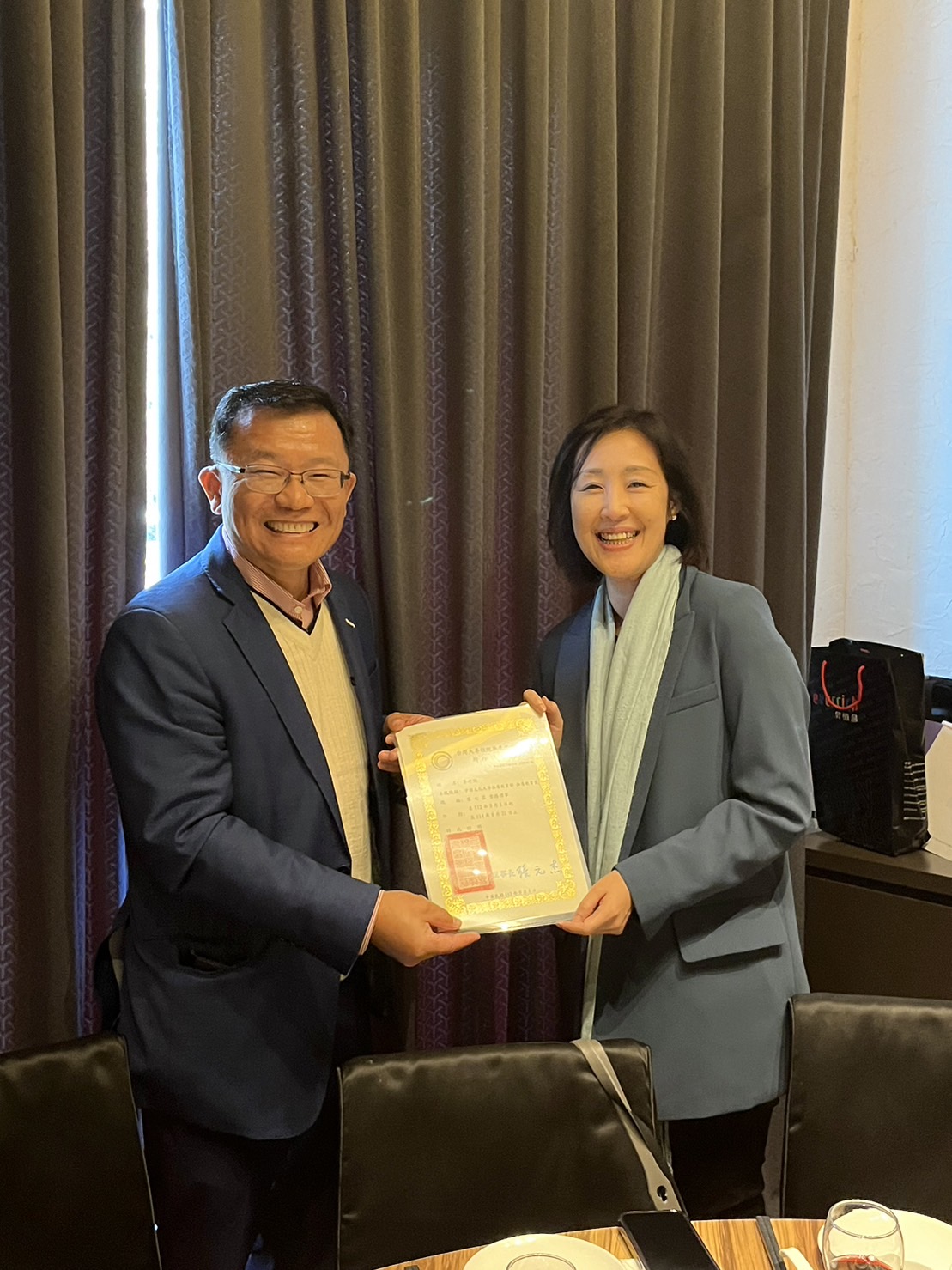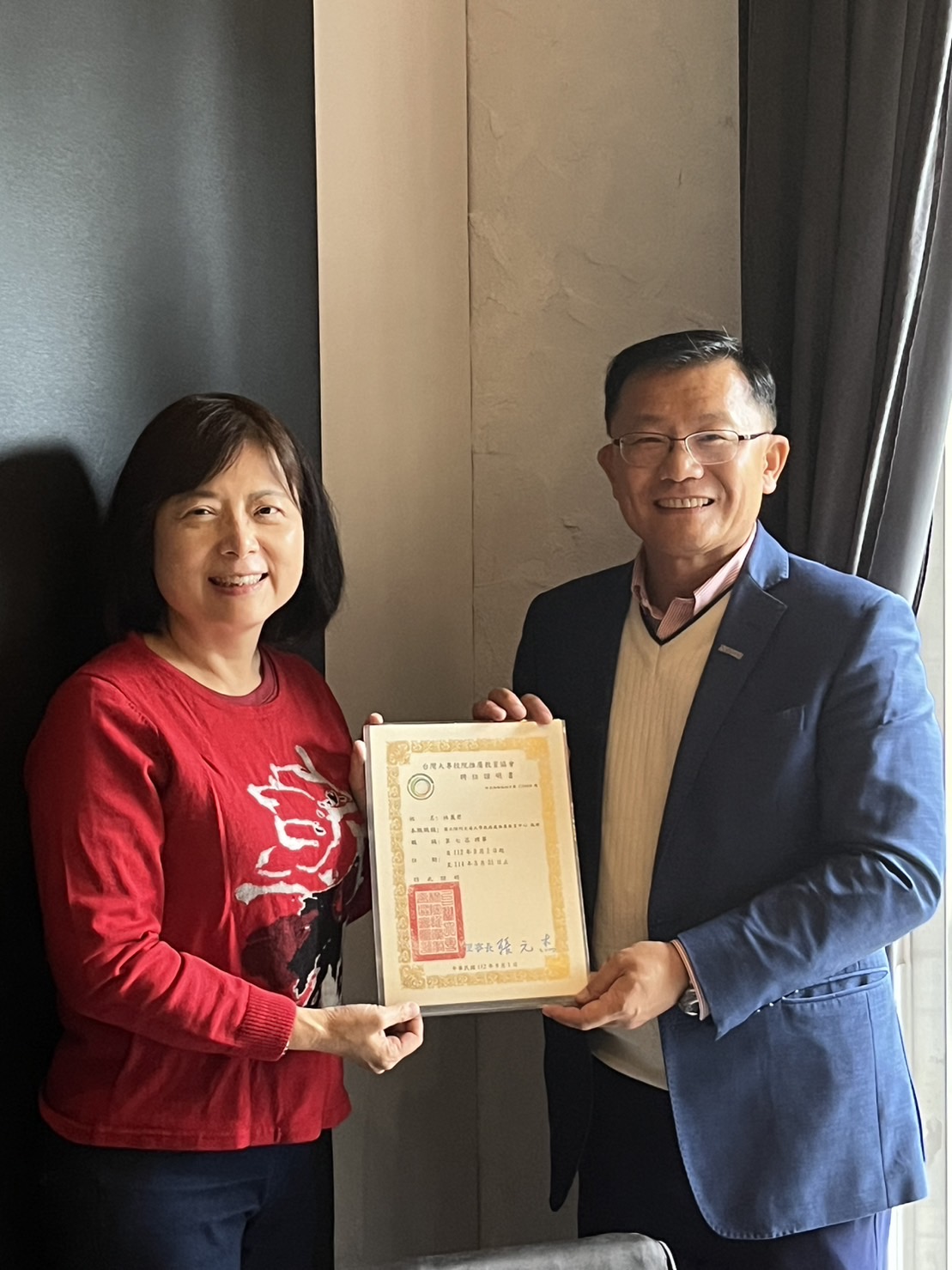 清華大學張元杰理事長(左)頒發聘書予世新大學許碧芳監事(右)