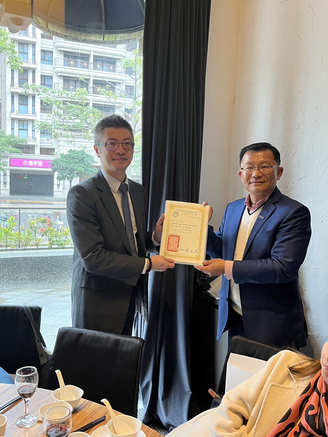 大專校院推廣教育協會於112年12月1日召開第七屆第二次理監事會議,清大張元杰理事長宴請本屆理監事群,並於會中頒發本屆聘書,
