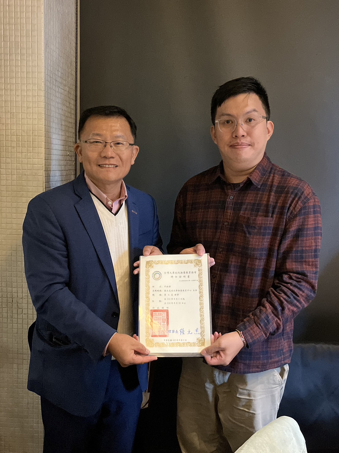 清華大學張元杰理事長(右)頒發聘書予臺灣大學郭佳瑋副理事長(左)