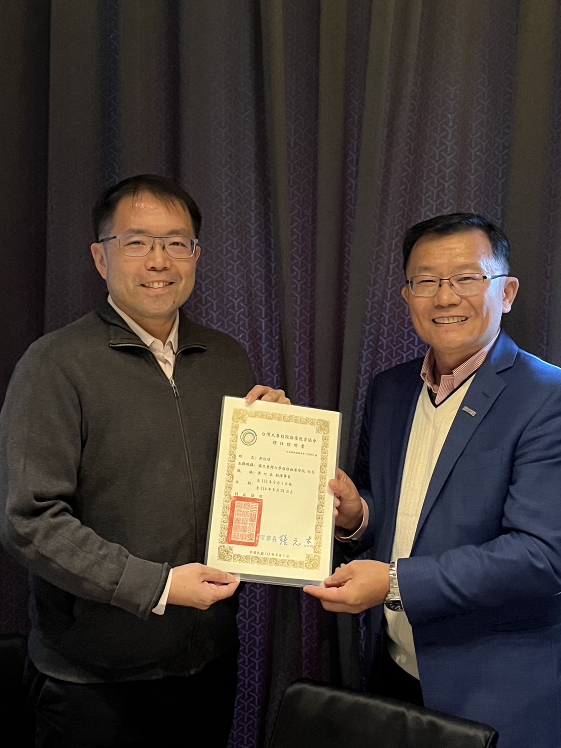 清華大學張元杰理事長(左)頒發聘書予中興大學董澤平理事(右)